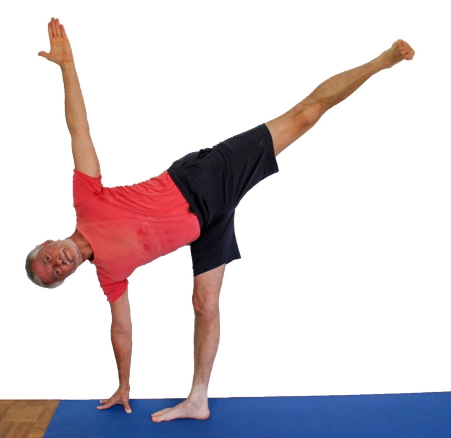 - Die Stabilität der Haltung an sich darf nicht von dem unteren Arm bzw. seiner Fingerspitzen am Boden abhängen. Erst dann, wenn der Arm zur Unterstützung der Drehung und Streckung des Oberkörpers eingesetzt wird, entsteht eine Abhängigkeit. Sobald der Krafteinsatz des unteren Arms wieder auf Null zurückgefahren wird, muss die Haltung auch ohne die Fingerspitzen am Boden wieder stabil sein.