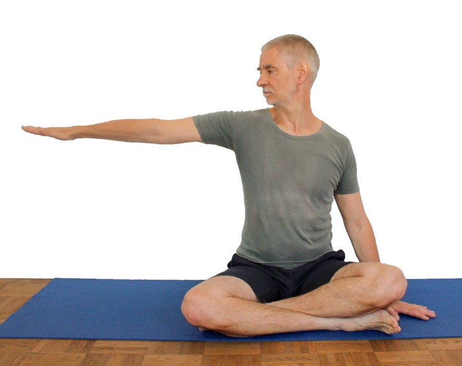 - Dieser spezifische Aspekt des Körperbewusstseins wird zum Beispiel in der trikonasana für den oberen Arm oder in der 2. Kriegerstellung für beide Arme benötigt.
