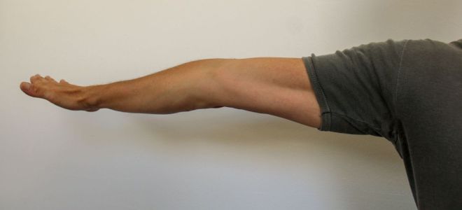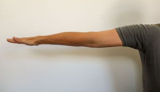 - Dann behalte die Position der Hand bei und drehe den Innenellbogen maximal nach unten (zum Boden).