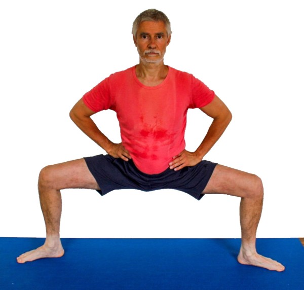 - Nimm aus tadasana provisorisch eine gut beinweite Grätsche ein.