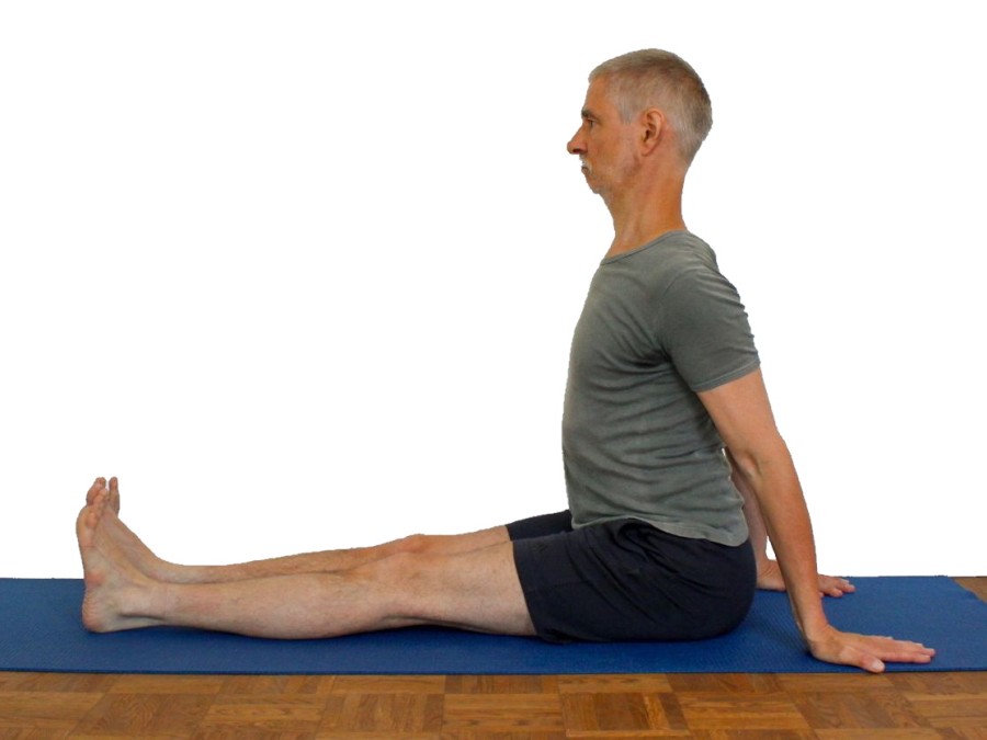 Die Abweichungen von der physiologischen Doppel-S-Form der menschlichen Wirbelsäule werden in dieser Haltung nur bedingt sichtbar. In LWS und HWS sollte ein gewisses Maß an Lordose (von vorn konvexe Wirbelsäule) und in der BWS ein gewisses Maß an Kyphose (von hinten konvexe Wirbelsäule) vorhanden sein. Diese Geometrie wird durch die Beweglichkeitseinschränkungen der allerdings nur zu häufig Ischiocruralen Gruppe verfälscht, die das Becken nach hinten kippen und die LWS-Lordose ins Gegenteil verkehren können. Siehe dazu die FAQ