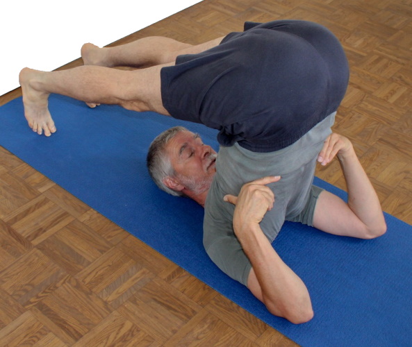 - Das Becken hebt sich in halasana gegenüber karnapidasana an und bewegt zur Decke, es macht also im Übergang zu halasana eine Aufrichte- und Hebebewegung gleichzeitig.