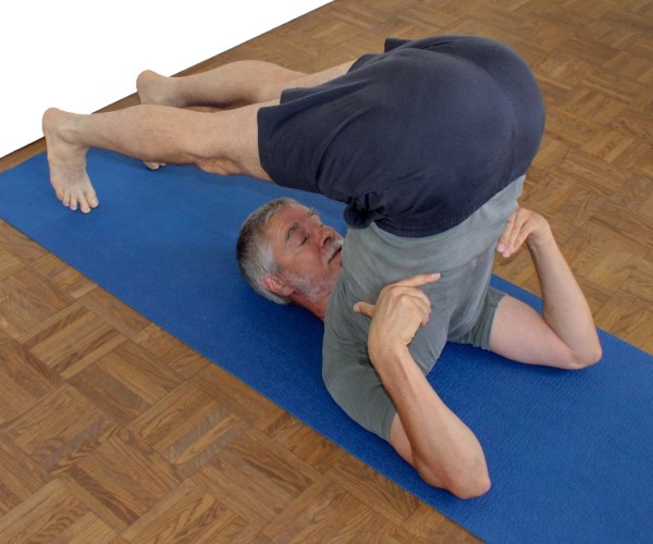 - Der Übergang aus halasana zu sarvangasana (Schulterstand) ist die dort beschriebene Standard-Variante diese einzunehmen.