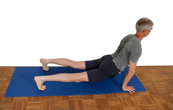 - Die Streckung des Oberkörpers bleibt erhalten, wenn auch im Stab keine BWS-Rückbeuge mehr vorliegt wie sie in der Hundestellung Kopf nach oben vorhanden war oder wünschenswert gewesen wäre.