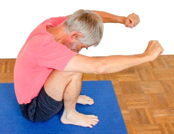 - Sitze mit dem Rücken zu einer Wand, mit einem Abstand, der in der Größenordnung der doppelten Länge des Oberkörpers liegt.