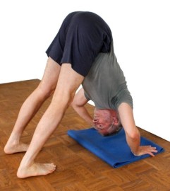 - Hier wird der elegante kraftvolle beidbeinige Übergang vom Kopfstand in uttanasana beschrieben: