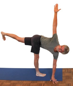 - Die Stabilität der Haltung an sich darf nicht von dem unteren Arm bzw. seiner Fingerspitzen am Boden abhängen. Erst dann, wenn der Arm zur Unterstützung der Drehung und Streckung des Oberkörpers eingesetzt wird, entsteht eine Abhängigkeit. Sobald der Krafteinsatz des unteren Arms wieder auf Null zurückgefahren wird, muss die Haltung auch ohne die Fingerspitzen am Boden wieder stabil sein. Dieser Zustand muss vor Verlassen der Haltung erreicht werden.
