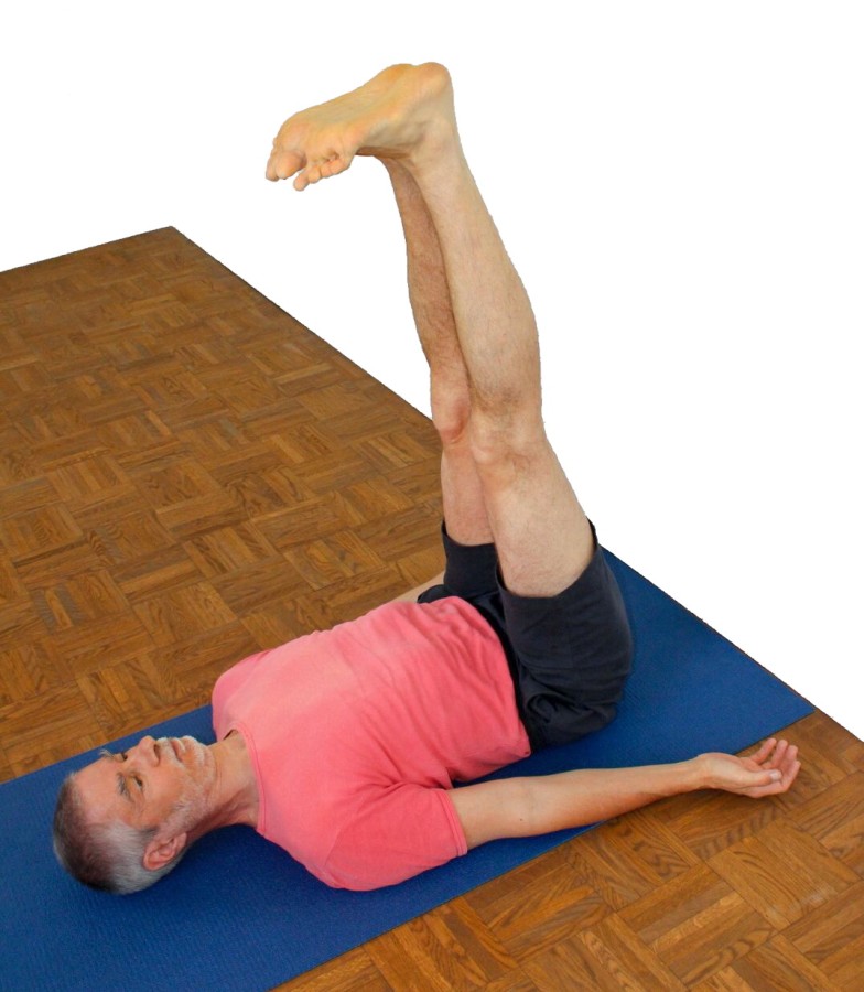 - Würden die Beine ohne Einsatz der Bauchmuskulatur (vor allem des Rectus abdominis) angehoben, so würde durch den großen Hebel der Beine und deren Zug über die Hüftbeuger an der LWS ein sehr deutliches Hohlkreuz, also eine vermutlich unangenehme, in jedem Fall aber unphysiologische Hyperlordosierung in der LWS entstehen. Zwar ist es kaum möglich, die Bauchmuskulatur nicht in einem gewissen Maße mit anzuspannen, jedoch geschieht dies nicht automatisch in einem Maß, das die Muskulatur in der LWS unbeeinträchtigt lässt. Arbeite also bewusst kräftig mit dem Rectus abdominis und verliere nicht die notwendige Atmung und deren Tiefe; wegen des Zugs des Rectus abdominis am Brustbein ist nämlich die Einatmung erschwert.