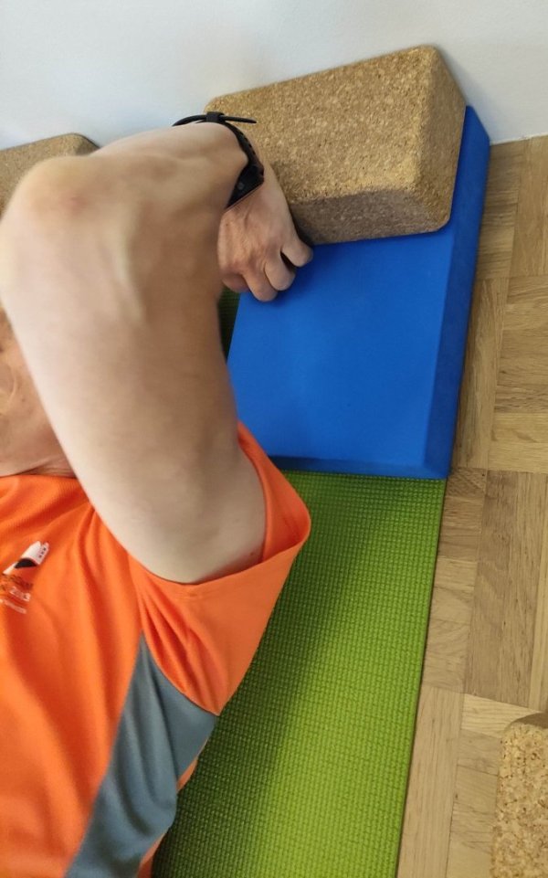 Hilfestellung zum Ausdrehen der Oberarme, vermindert Krampfneigung.