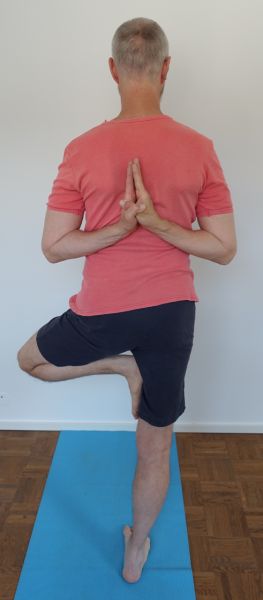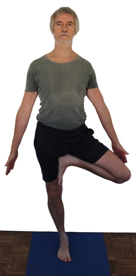 Hauptursache für die Unfähigkeit, wenigstens kurzfristig beim Einnehmen der Haltung die Ferse gegen das Perineum zu drücken und für das Abrutschen des Beins vom Oberschenkel in der Haltung ist das Streckmoment im Kniegelenk, das aus der Spannung der (insbes. monoartikulären) Quadrizeps-Anteile resultiert. Regelmäßig lässt sich erkennen, dass wenn in virasana die Sitzbeinhöcker nicht satt auf den Boden drücken, die Gefahr besteht, dass in vrksasana der Fuß abrutscht. Umgekehrt lässt sich abschätzen, dass wenn in der Quadrizepsdehnung an der Wand der Po die Wand erreicht, dieses Problem nicht mehr besteht. Nach Konstruktion bieten sich virasana und Quadrizepsdehnung 1 an der Wand auch als wichtigste Vorübungen für diesen Aspekt der Haltung an.